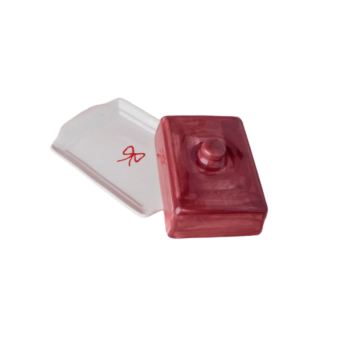 Handmade in Southern Spain, this ceramic butter dish with a lid blends deep burgundy and soft beige tones inspired by festive gatherings. Ideal for butter, cheese or sweet treats. Food safe and dishwasher friendly.